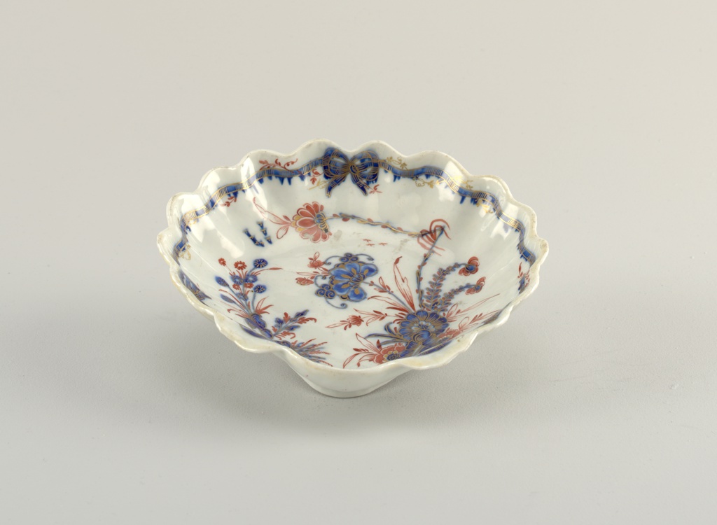 This is a dish. It was manufactured by Cozzi Porcelain Factory. It is dated ca. 1770 and we acquired it in 1938. Its medium is hard paste porcelain, vitreous enamel, gold. It is a part of the Product Design and Decorative Arts department.