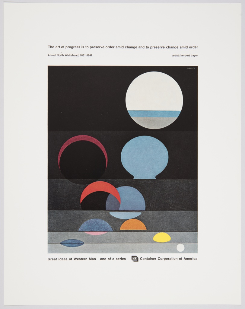 Print, Great Ideas of Western Man Featuring Alfred North Whitehead; Designed by Herbert Bayer (American, b. Austria, active Germany and USA, 1900–1985); Client: Container Corporation of America (United States); offset lithograph on glossy white paper; 35.6 × 28 cm (14 × 11 in.); Museum purchase with funding provided by the Buddy Taub Foundation, Dennis A. Roach and Jill Roach Directors; 2016-54-21