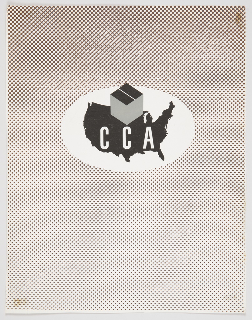 Booklet Cover, CCA; Designed by Herbert Bayer (American, b. Austria, active Germany and USA, 1900–1985); Client: Container Corporation of America (United States); offset lithograph on glossy white paper; 36.6 × 28.7 cm (14 7/16 × 11 5/16 in.); Museum purchase with funding provided by the Buddy Taub Foundation, Dennis A. Roach and Jill Roach Directors; 2016-54-41